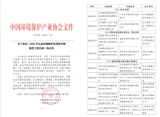 江蘇灌云項目入選《2025 年生態環境保護實用技術和典型工程名錄》
